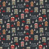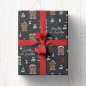 Vánoční balicí papír 70 x 100 cm - 115 g/m2 - Zasněžená vesnička tmavá