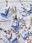 Visačky Sněhuláci 2 - 6,5 x 5 cm - sada 5 ks