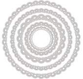 Kruhy s kajkovým lemem v pěti velikostech je všestranná sada vyřezávacích šablon, která najde uplatnění v různých kreativních projektech.