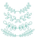 Sada vyřezávacích šablon v podobě různých jemných větviček s listy v "půlkruhu". Díky svému tvaru se z větviček velmi snadno skládá věnec!