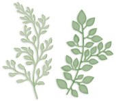 Sada vyřezávacích šablon ve tvaru dvou druhů větviček. Díky těmto univerzálním raznicím můžete vyřezávat jemné vzory, které dodají vašim cardmakingovým a scrapbookovým projektům mimořádně elegantní charakter a závan svěžesti. Větvičky jsou dostatečně velké na to, aby vytvořily na přání hlavní element.