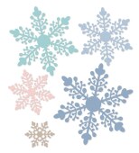 Sada raznic pro vytvoření jedinečných vánočních a zimních projektů. Skládá se z 5 prolamovaných sněhových vloček se stejným vzorem, ale v různých velikostech.