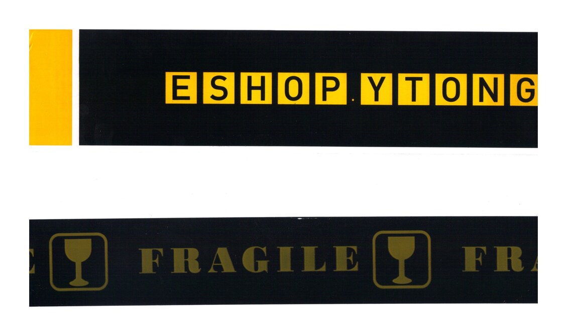 ESHOP YTONG - tisk černé a žluté na bílou pásku - barvy se nepřekrývají, oranžová leží přímo na bílé (nikoliv na černé) a tak může být pěkně jasná.