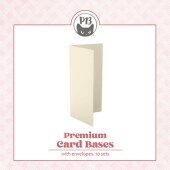 Sada obsahuje 10 čtvercových kartonových základů v krémové barvě o rozměrech 10 x 21cm (4  x 8 1/4 palce)a 10 odpovídajících krémových obálek o rozměrech 11 x 22cm (4 5/16 x 8 11/16 palce).